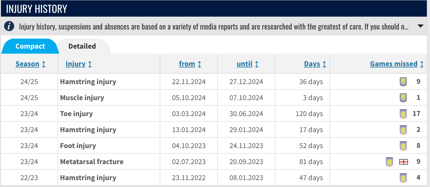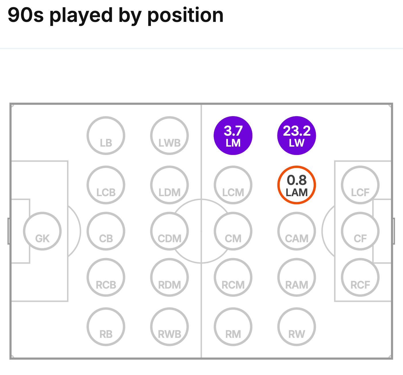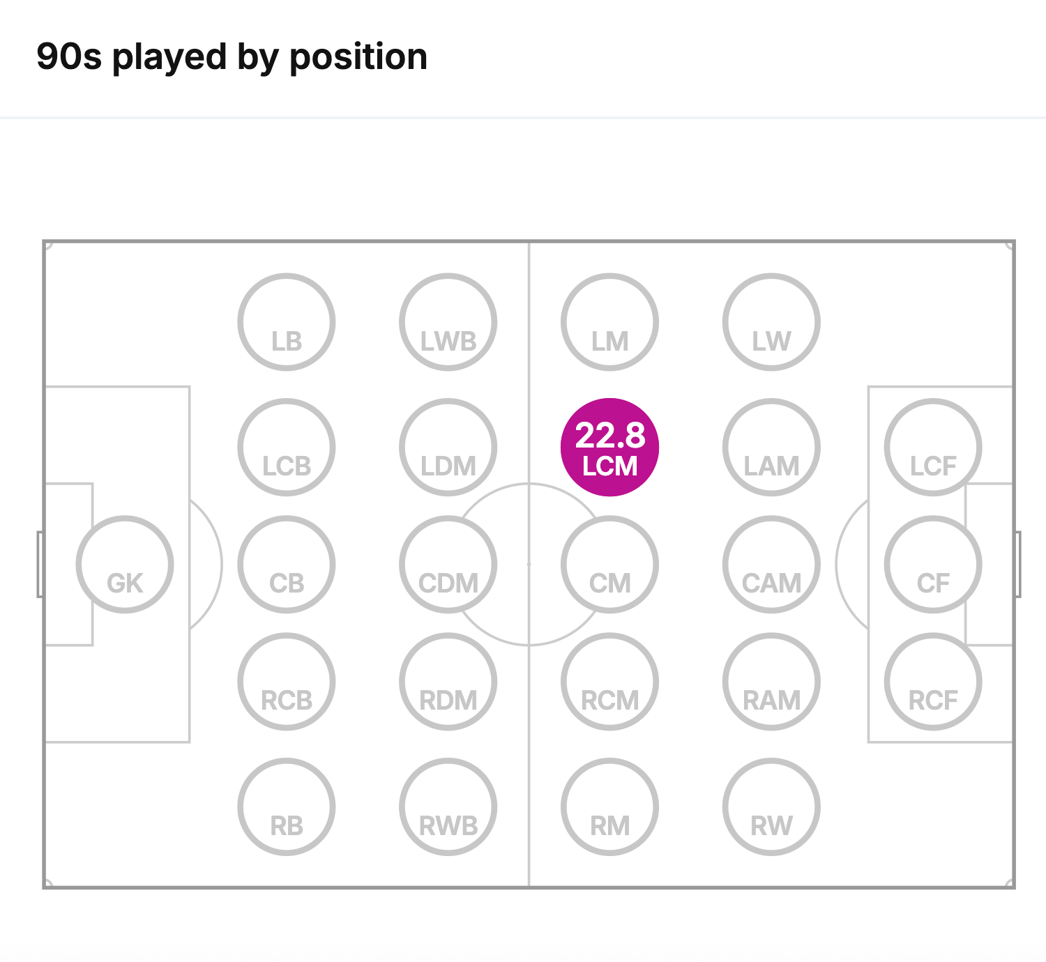 All in all, it’s 10,000+ minutes of experience across all comps. It would’ve been even more had it not been for an injury-hit 23/24 campaign that seems to have given the player a reputation for being ‘injury-prone’ despite being available for the majority of 24/25.