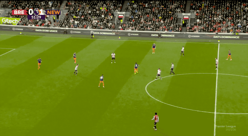 With the attack so disjointed, opposition teams are using it to their advantage. Because Newcastle are not consistently finding ways to release runners beyond Woltemade, and with the German international unable to stretch the pitch himself, opponents are squeezing the game vertically and giving Newcastle less room to play, which only exacerbates the issues in attack.