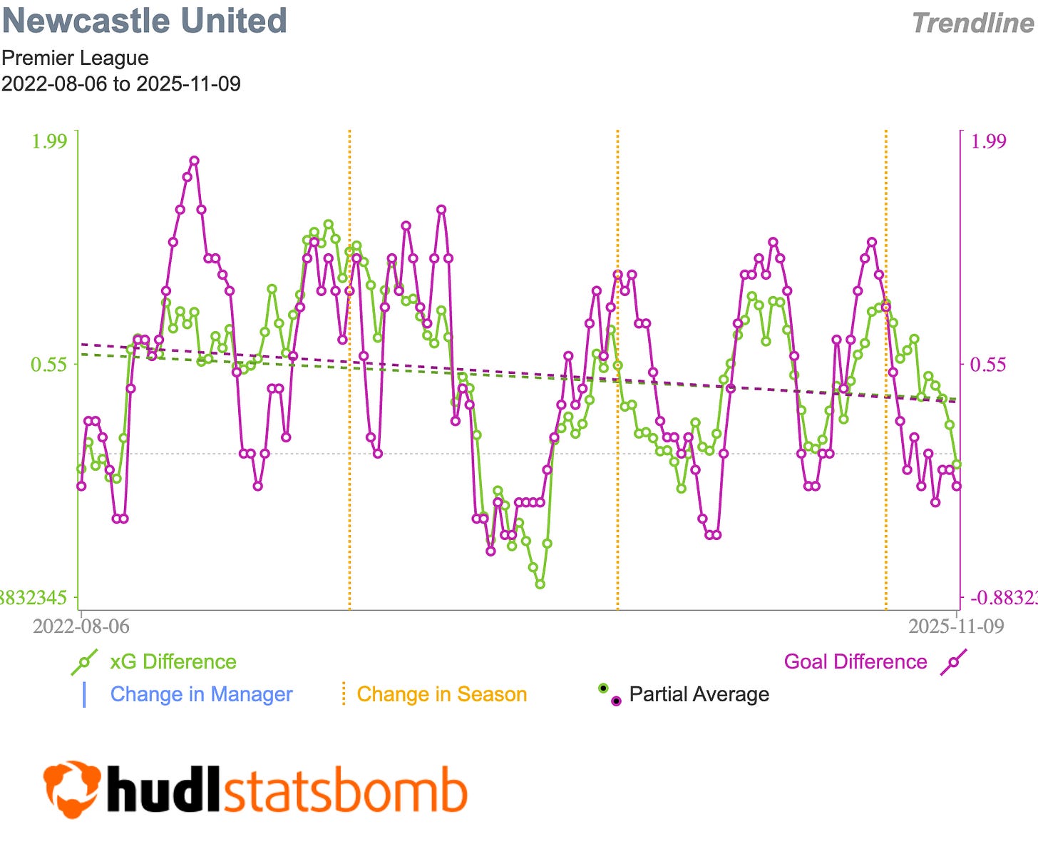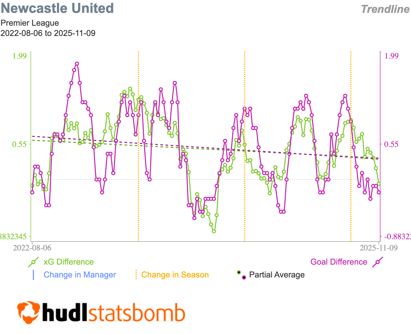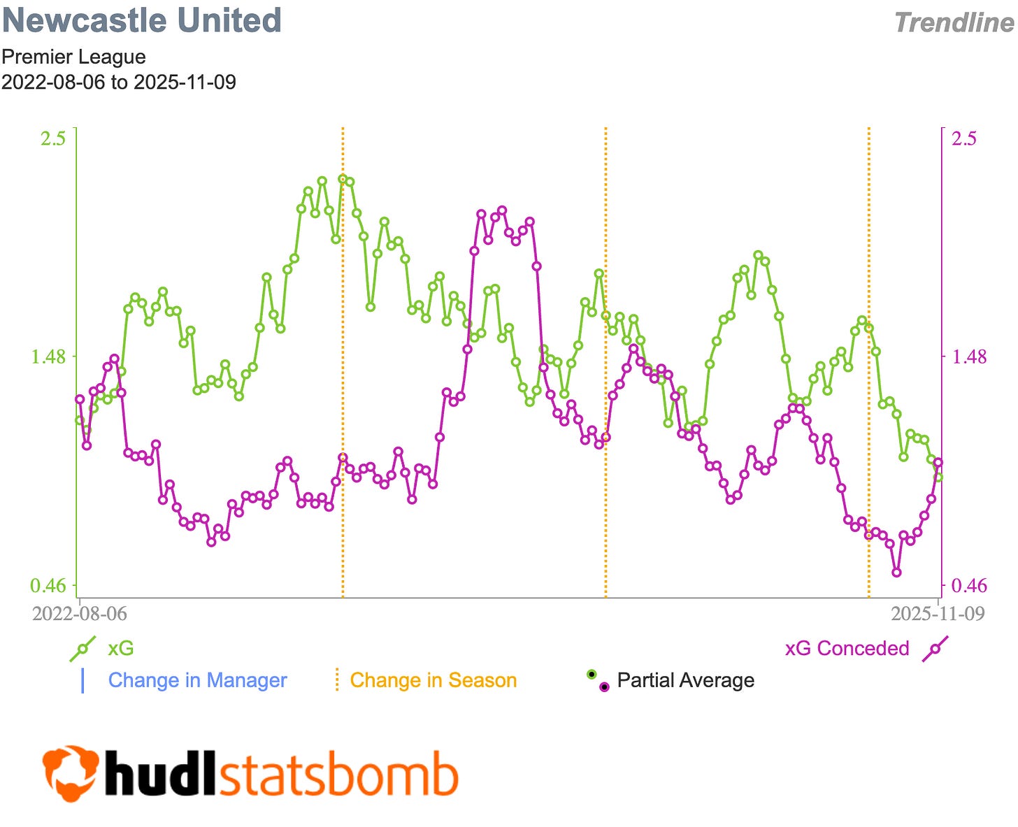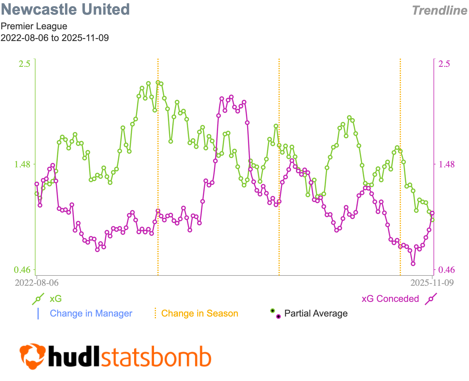 Those two games were not just bad afternoons. They were part of a wider pattern that has been building across the start of the season, which Howe himself would describe as not good enough. This piece is not about picking a scapegoat. It is about looking at what has changed, what has stayed the same, pinpointing the reasons behind the changes, and what that tells us about where Newcastle United are right now.