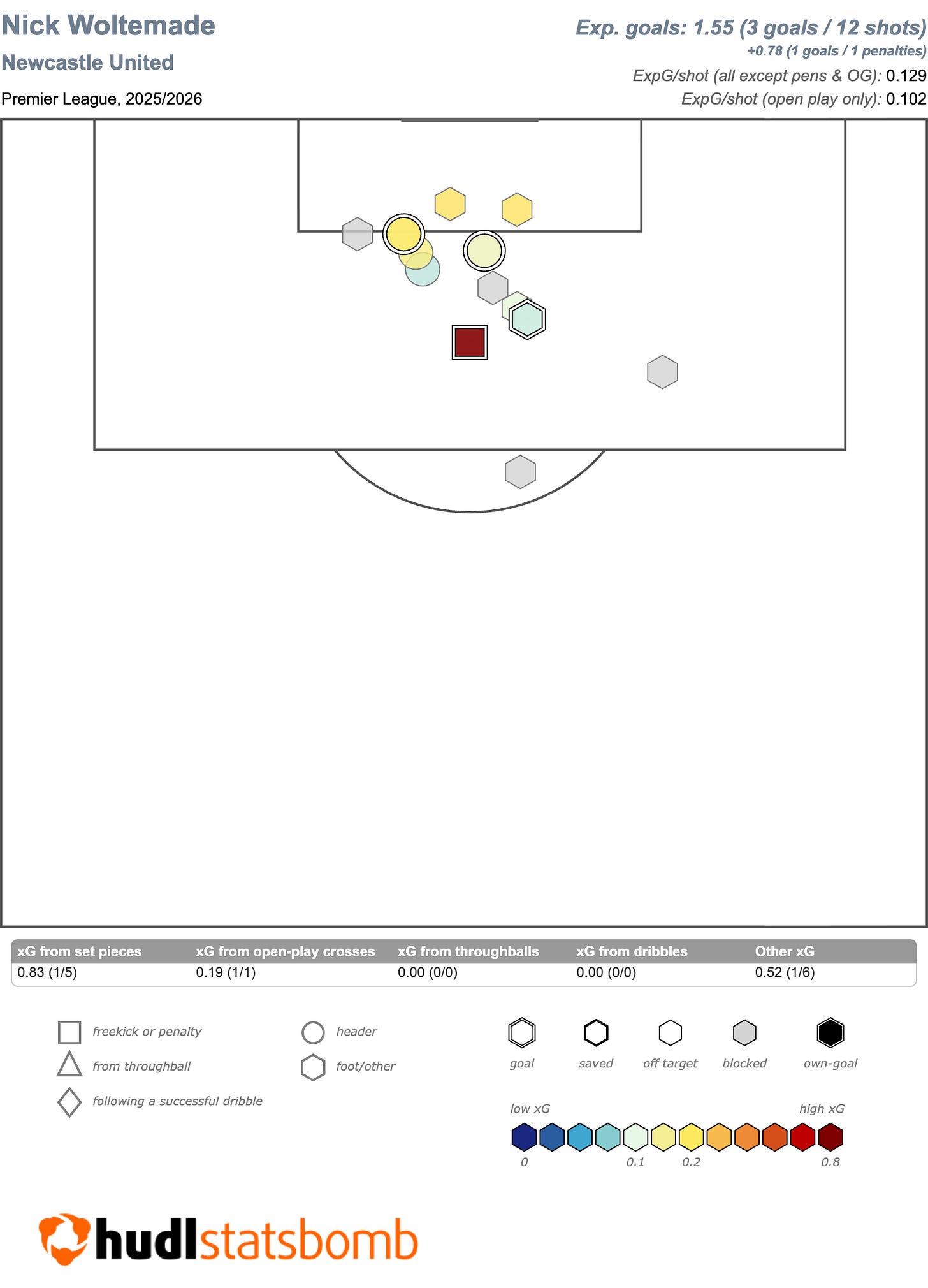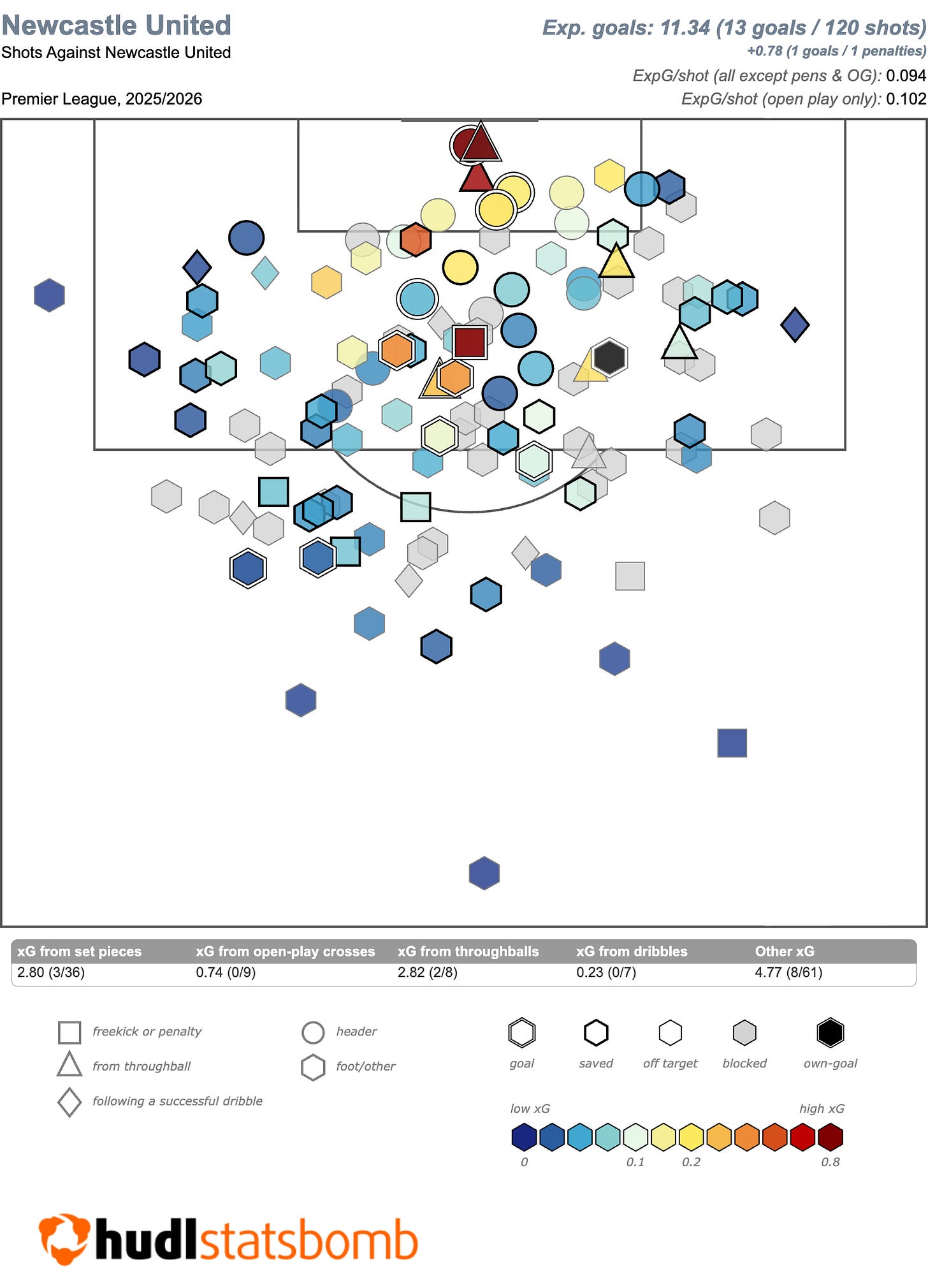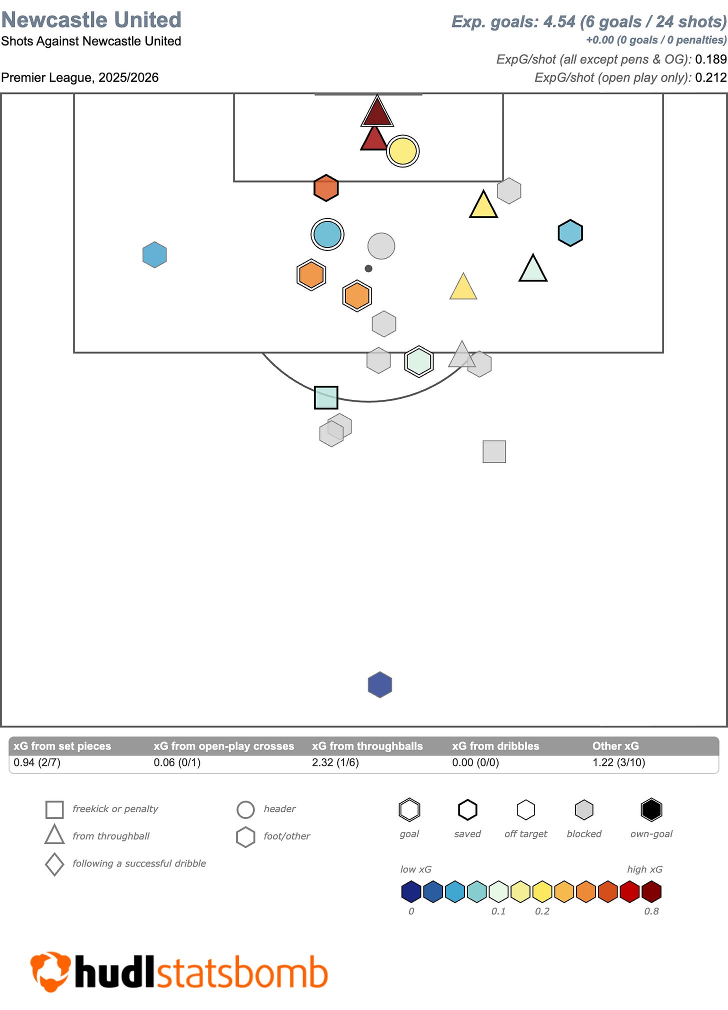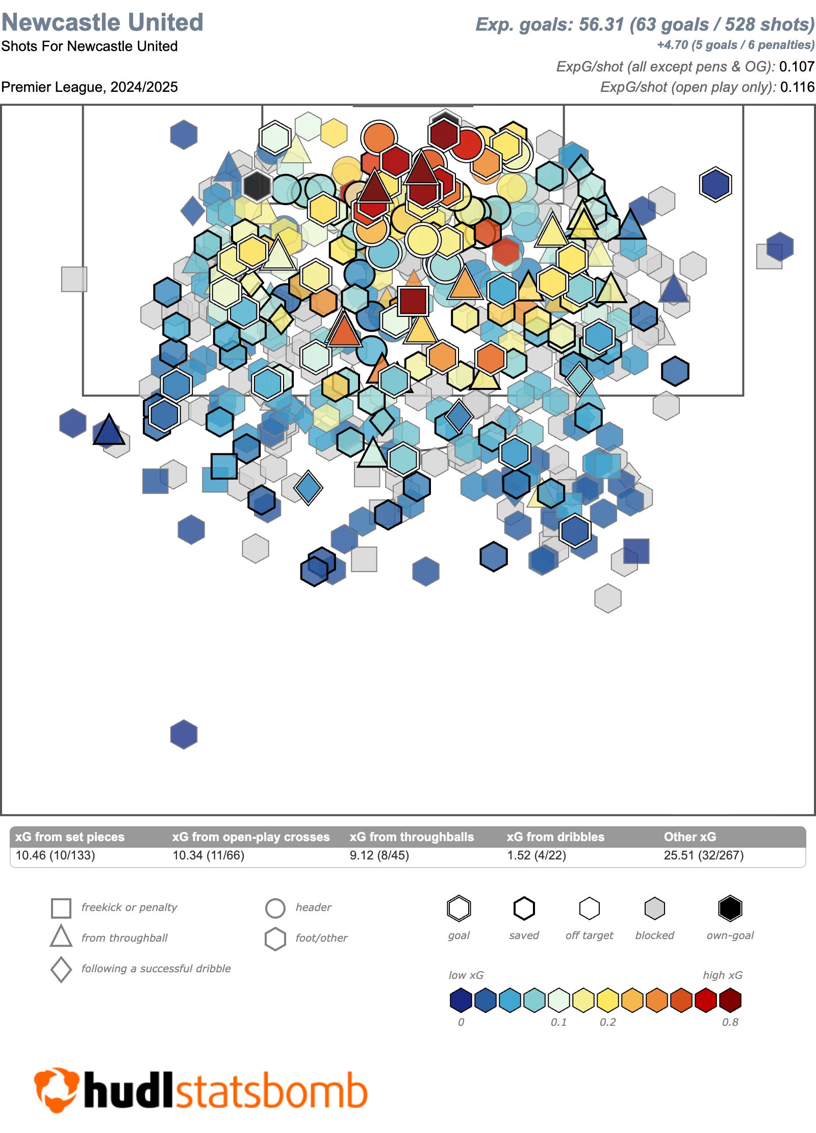 To anyone that has watched a lot of Newcastle United this season. There not much here regsiters as a surprise, especially in attack, which has looked disjointed, underbaked and has relied on set pieces/high press shots to stay afloat.
