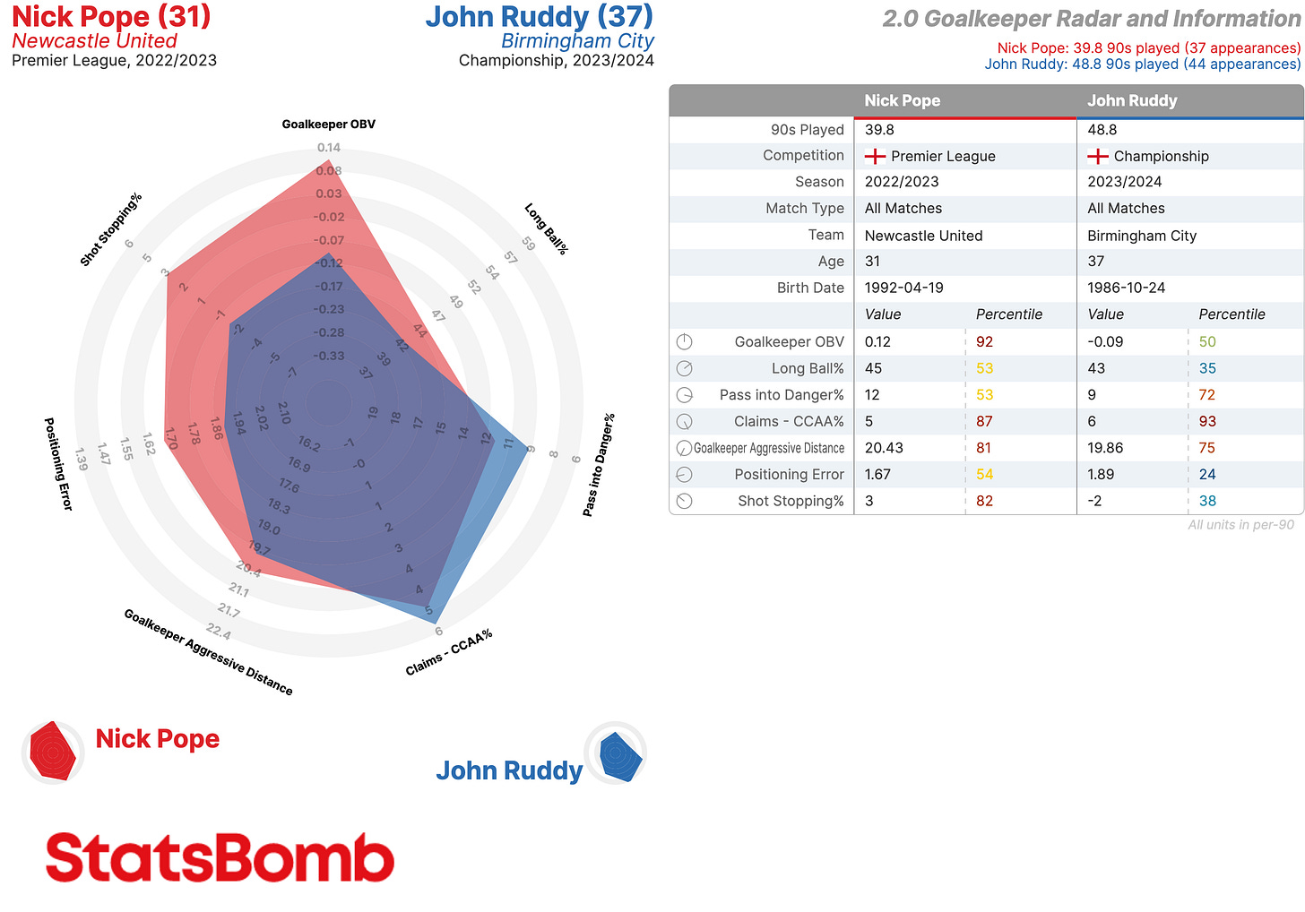 Amid the PSR deadline madness, Newcastle United added two new goalkeepers to the squad to replace the almost certainly outgoing Martin Dubravka and the released Lorius Karius. Now I’d done a whole heap of work on a long bit of analysis on James Trafford, which now needs binning (😭), I’m on my holiday and looking at two older backup keepers isn’t anyone’s idea of a great time so I’ll keep this brief.